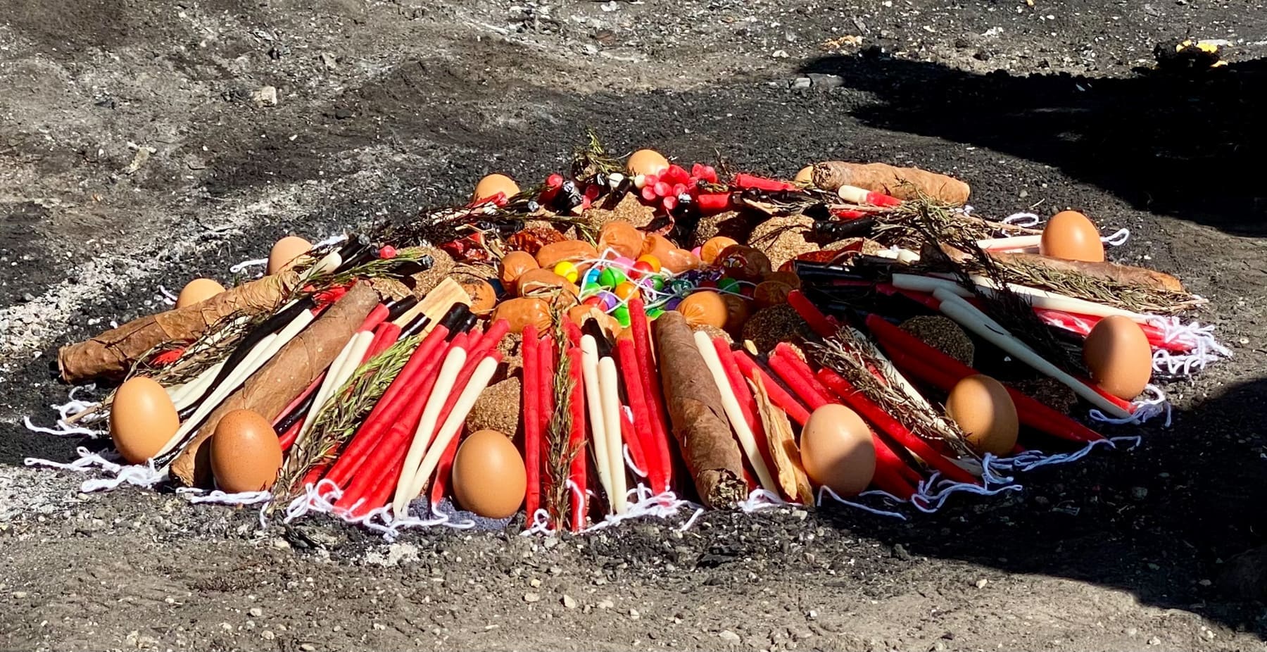 Colorful candles, flowers, and incense are placed into the fire as offerings to the divine—gifts for protection, healing, guidance, or gratitude. As the flames grow, your prayers, intentions, and reflections rise with the smoke. You’ll be invited to set a personal intention, hold space for it, and contribute it to the sacred fire.